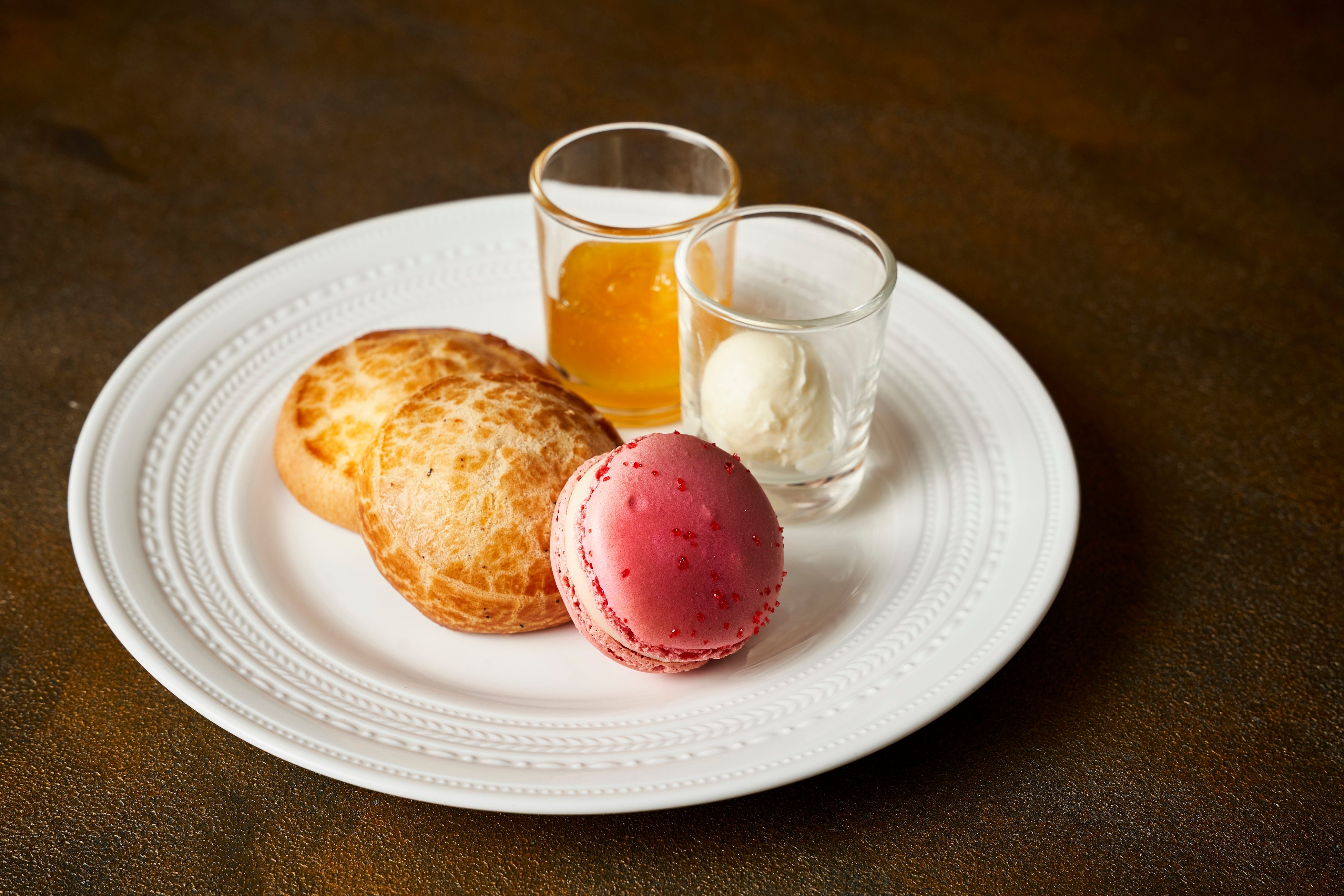 スイーツには、グラスデザートを除く4つのプティフールにマカロンを用いています。