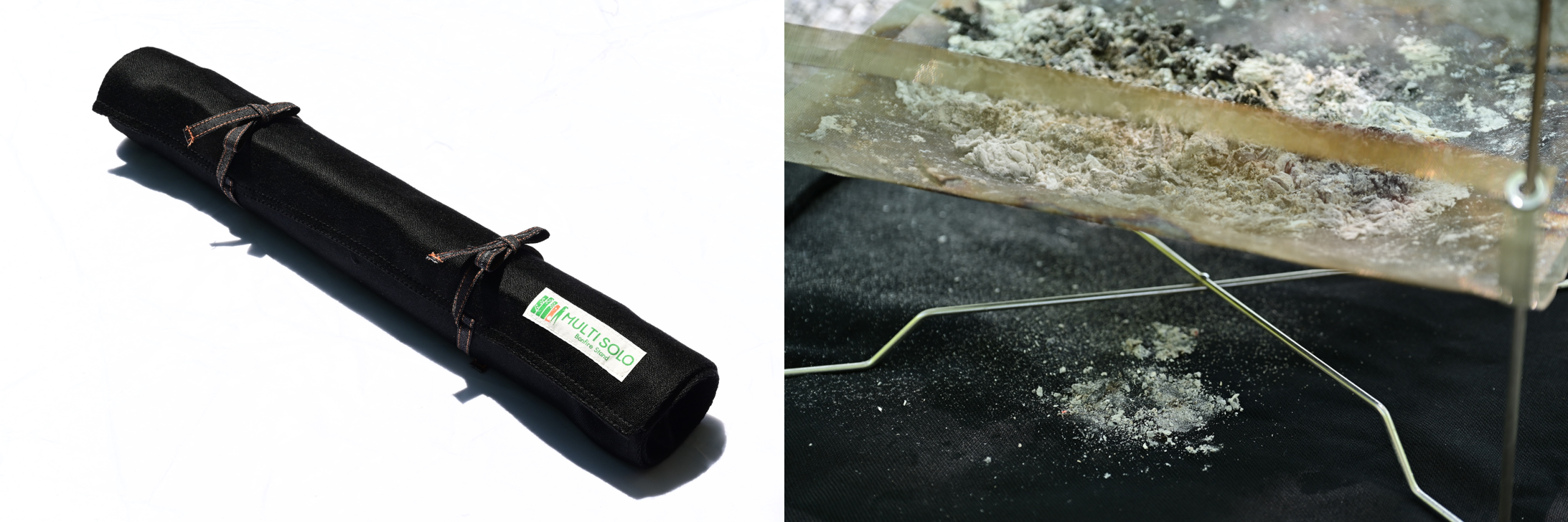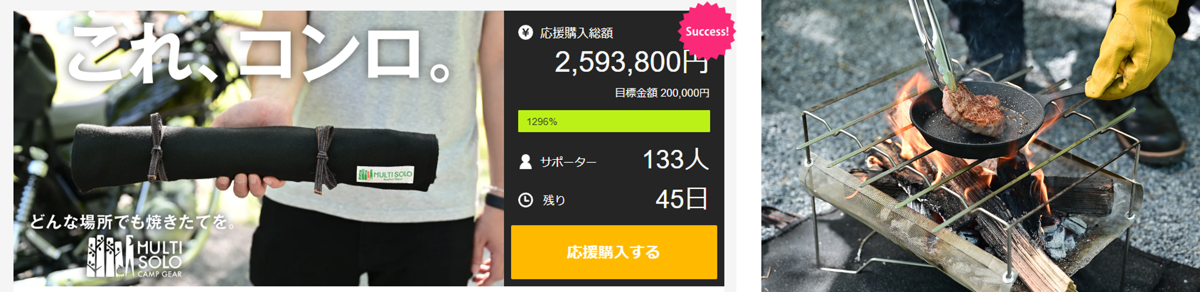 日越が日々アウトドアライフを送る中で抱いていた課題を解決するため、有限会社上田製作所の線材加工技術を駆使し、国内製造にこだわり抜いた第一弾商品「MULTI SOLO Bonfire Stand」の開発に成功しております。