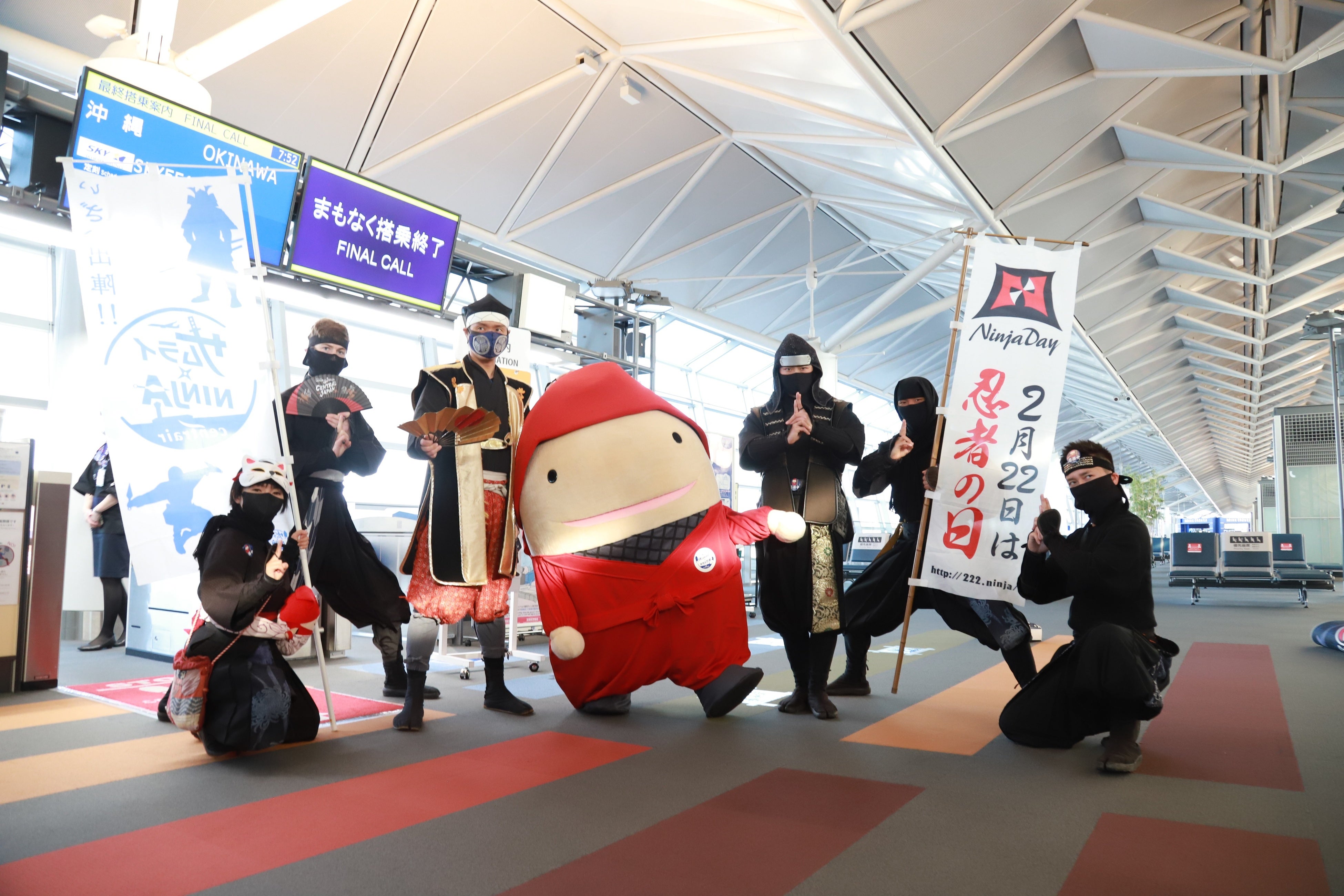「徳川家康と服部半蔵忍者隊」が空港にやってきて、第1ターミナルやフライト・オブ・ドリームズで忍者体操や演舞、じゃんけん大会などを開催します。