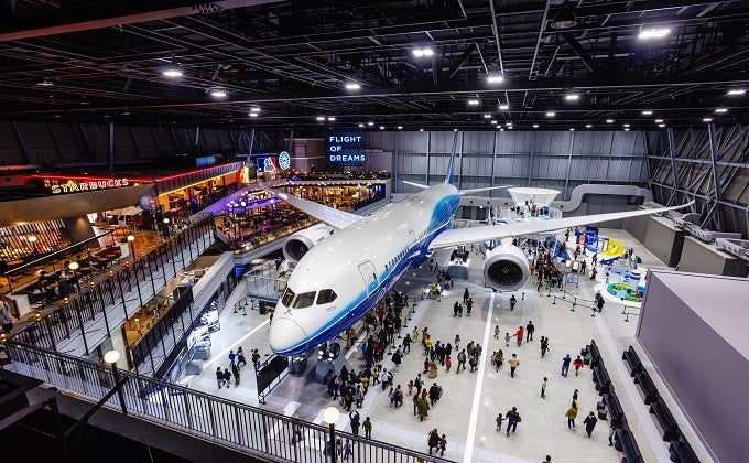 ボーイング787初号機が展示された複合型商業施設で、飛行機を間近に見ながらお子様と一緒に遊ぶことのできる遊具を多数設置しております。
