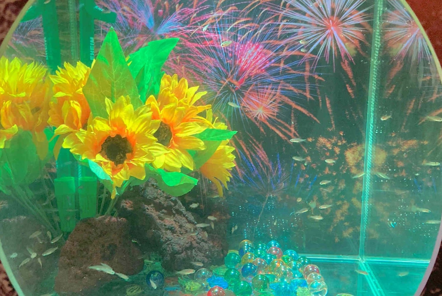浴衣、七夕、花火のなど、夏に因んだ名前を持つ魚を5種類展示しました。水槽にはそれぞれの名前に合わせたレイアウトを施し、生体の持つ個性をより感じられる仕掛けとなっています。