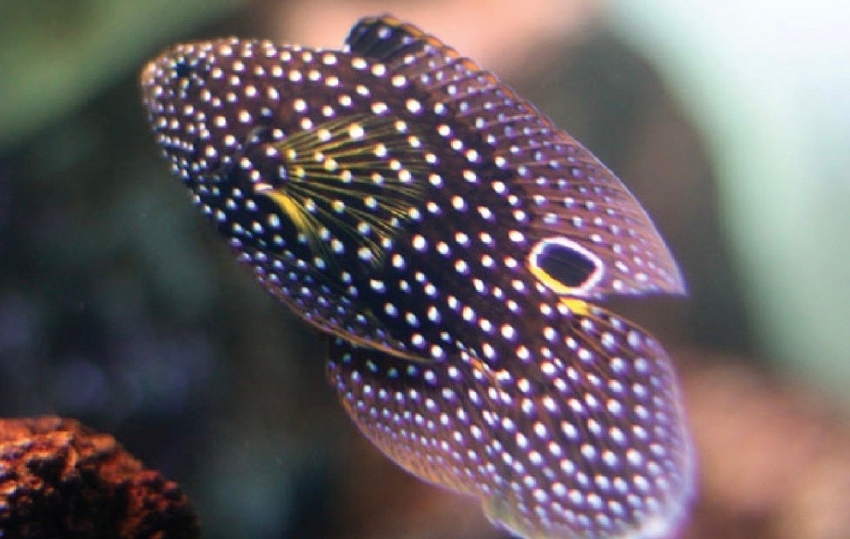 温帯のサンゴ礁の岩影などに生息する。最大で15センチほどになり、基本的には単独で行動する事が多い。体の星を散りばめたような模様と背鰭の目玉模様が特徴でハナビラウツボに擬態しているという説もある。