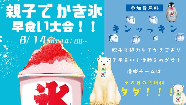 1つの器のかき氷を親子で協力して食べきります。優勝者には『クロスポペア無料チケットをプレゼント』