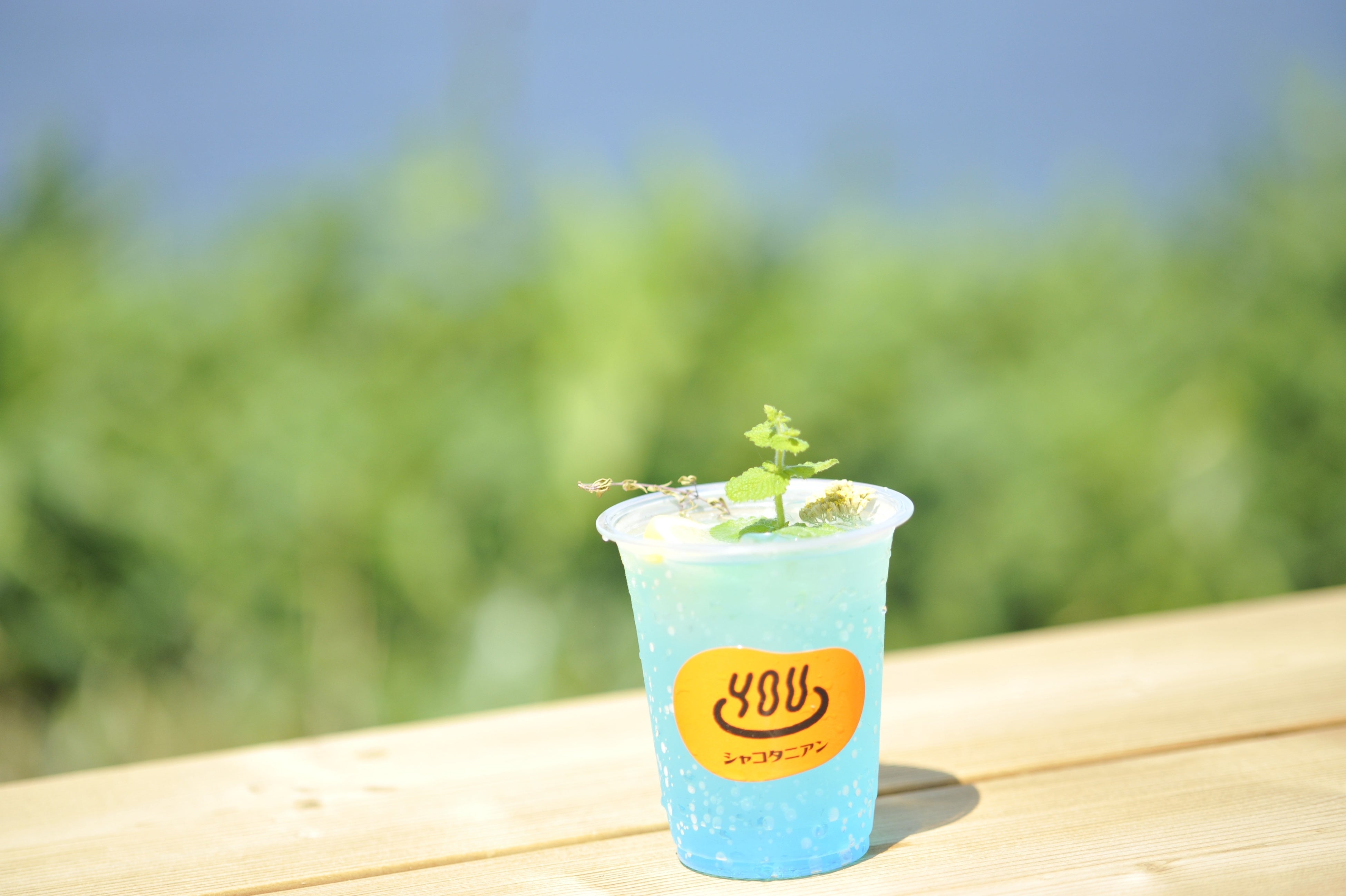 この度、温泉に隣接するクラフトジン蒸留所「積丹スピリット」が農地で育てている天然のハーブを用いて、シャコタンブルーカラーのボタニカルドリンクが完成しました、今回の夕日テラスのオープンと同時に「岬の湯しゃこたん」で販売を開始。温泉後の体に優しい一息としてお楽しみいただけます。また、テイクアウトが可能なため、ご自宅や旅の途中でも、当温泉の癒しを感じることができます。