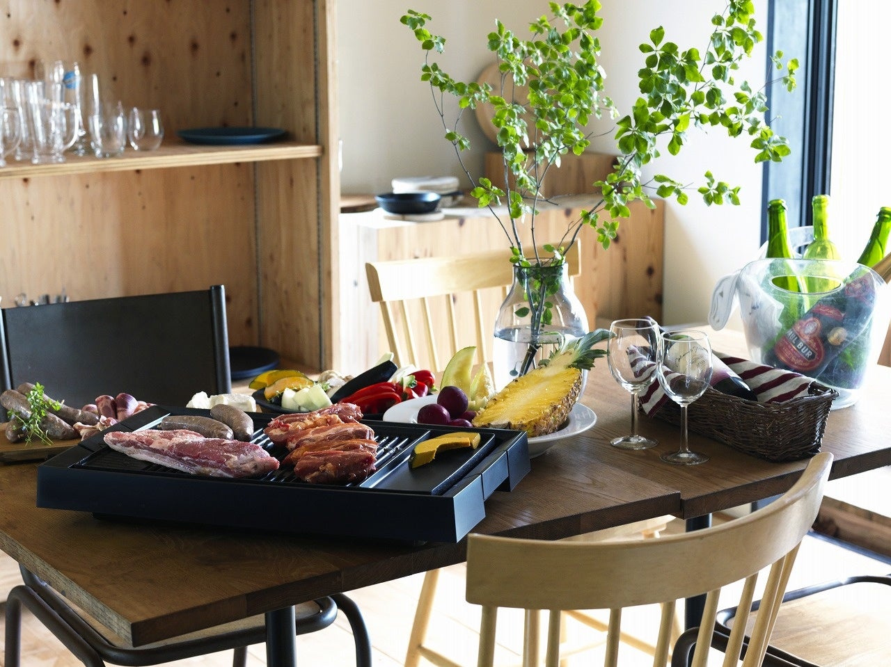 目の前には富士山が眺められる約40㎡のウッドデッキラウンジでは、リクライニングチェアでコーヒータイムを寛いだり、BBQを楽しむことができます。