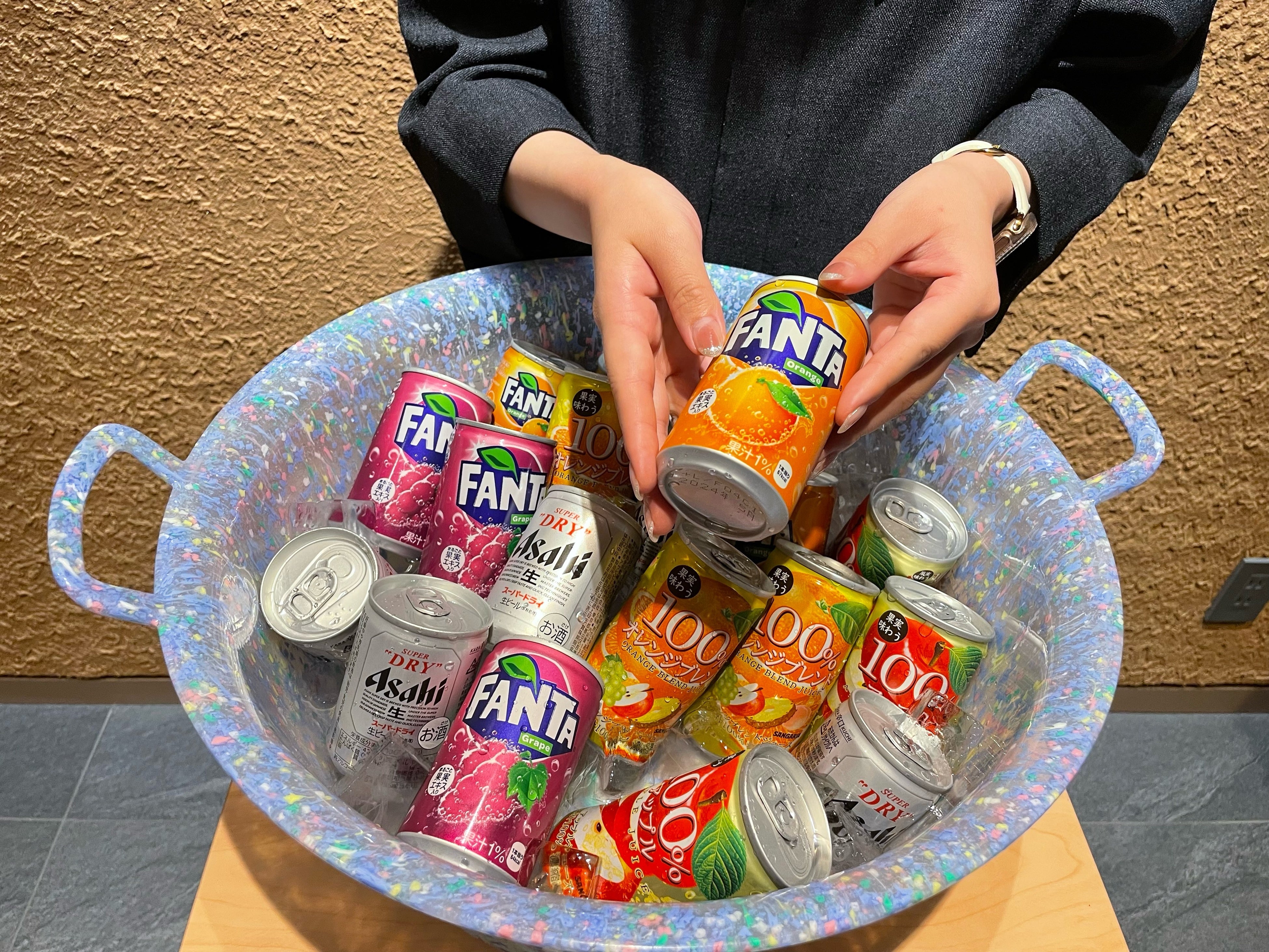 貸切風呂をご利用のお客様に、ドリンクを無料でサービスいたします。お好きな飲み物を選んで、湯田温泉の美人の湯を堪能しながらリラックスできます。