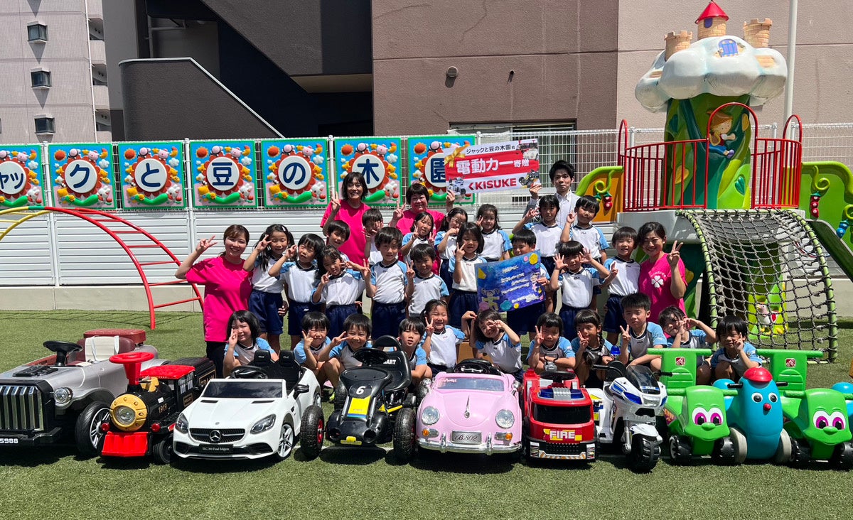 認定こども園【ジャックと豆の木園】にキスケ株式会社が電動カーを寄贈。【愛媛県・松山市】
