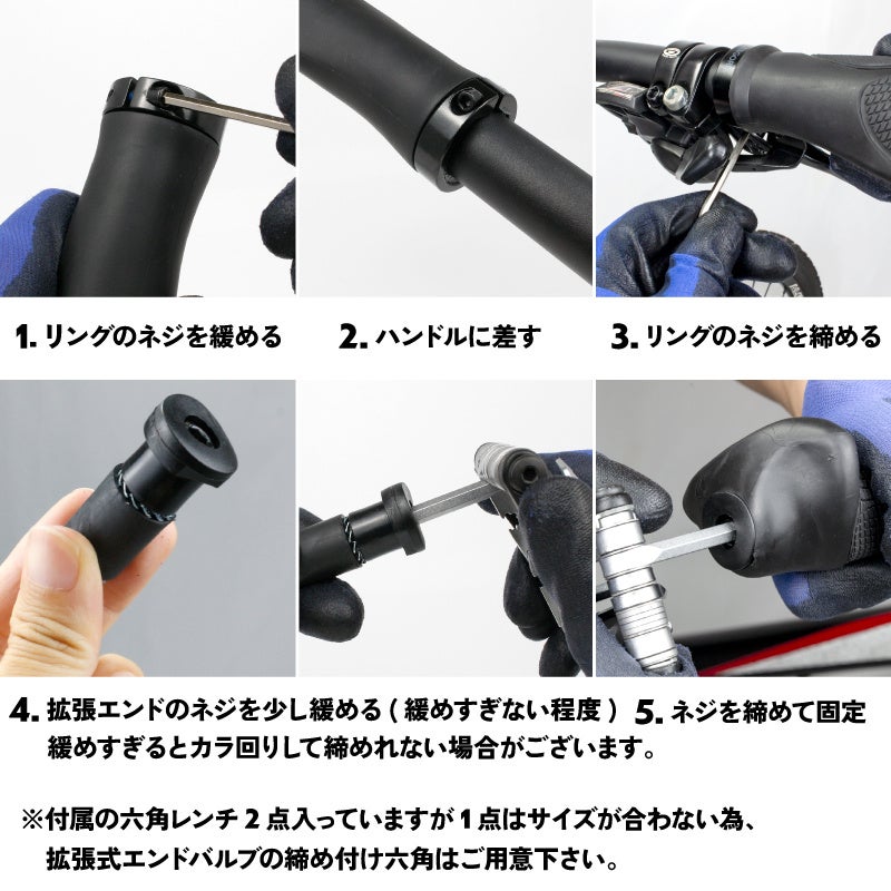 グリップ、拡張式エンドバルブ、六角工具×1 |