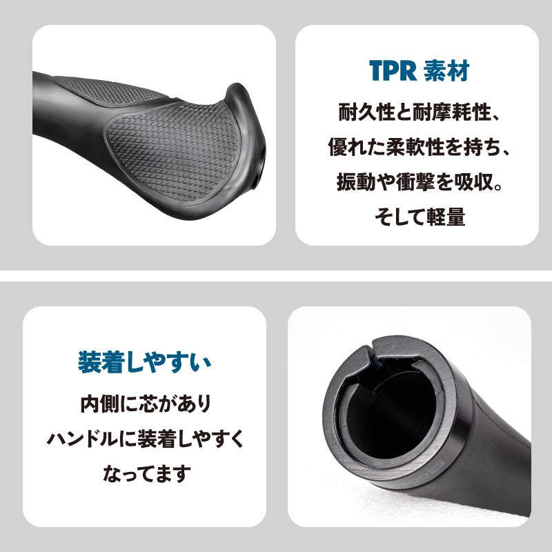 長時間のライディングに向いているエルゴ形状は、手首や掌の疲れの軽減と高いフィット感が期待できます。