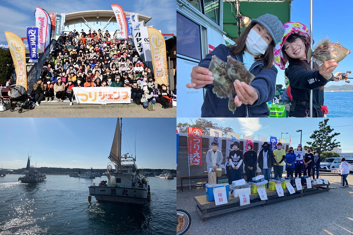 今年で第9回となる『女性だけのカワハギフェスタ』 は世界最大規模の釣りイベント!!  2022年からは新たに関西会場でも同時開催しています。回を重ねるごとに盛り上がりを見せており、今年は2会場で計260名の参加を見込んでいます。大会では釣ったカワハギ3尾の重量を競い、上位入賞者には豪華な賞品が進呈されます。また、参加者には参加賞としてつりジェンヌが用意したノベルティが配られるほか、協賛企業からの素敵な景品が当たる大抽選会などもあります。