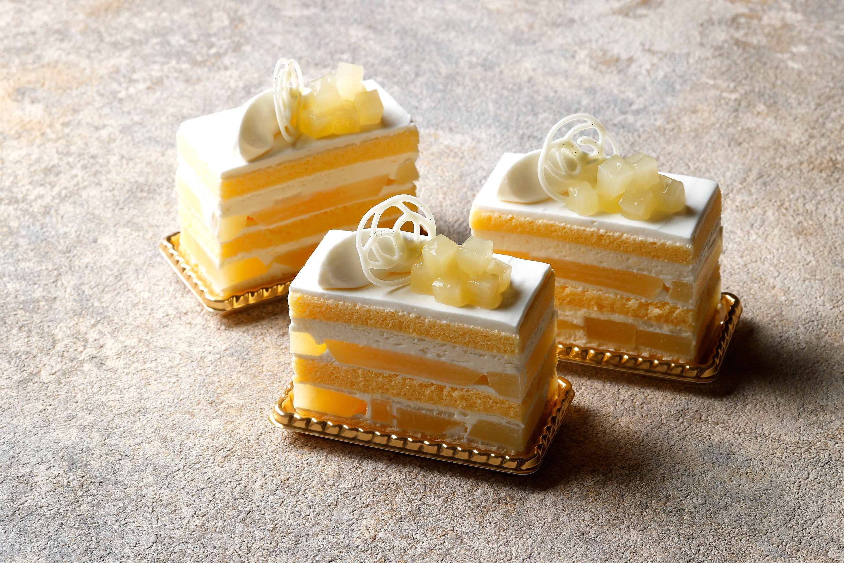 しっとりとしたスポンジの間に、旬を迎える洋梨と、洋梨の果汁を加えた風味豊かなクリームをサンドし、繊細な3層のケーキに仕立てました。