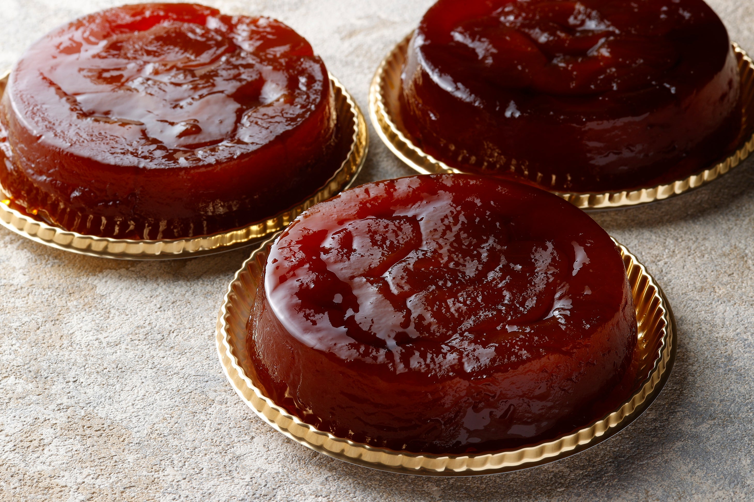 煮たりんごをカラメルでさらに煮ることで、美しい飴色に仕上げたスイーツです。りんごの品種は長野県小布施町で収穫される「ブラムリー」を使用。爽やかな酸味が特徴の青りんごで、甘酸っぱいりんごの味と、柔らかな果肉の食感をお楽しみいただけます。「ブラムリー」が終売になり次第、素材を「紅玉りんご」に替えたタルトタタンをご提供します。