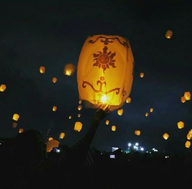 ろうそくのように光るLEDライトに和紙の笠をかぶせ、柔らかい光を放つランタン。中にヘリウムガスを充てんし、頭上にふわふわと浮かべます。思いを込めたくさんのランタンを一斉に浮かべることで、夜空に灯りを灯し、幻想的な空間を作り上げます。当日はディズニーの【ラプンツェル】の曲にのせてランタンを打ち上げます!