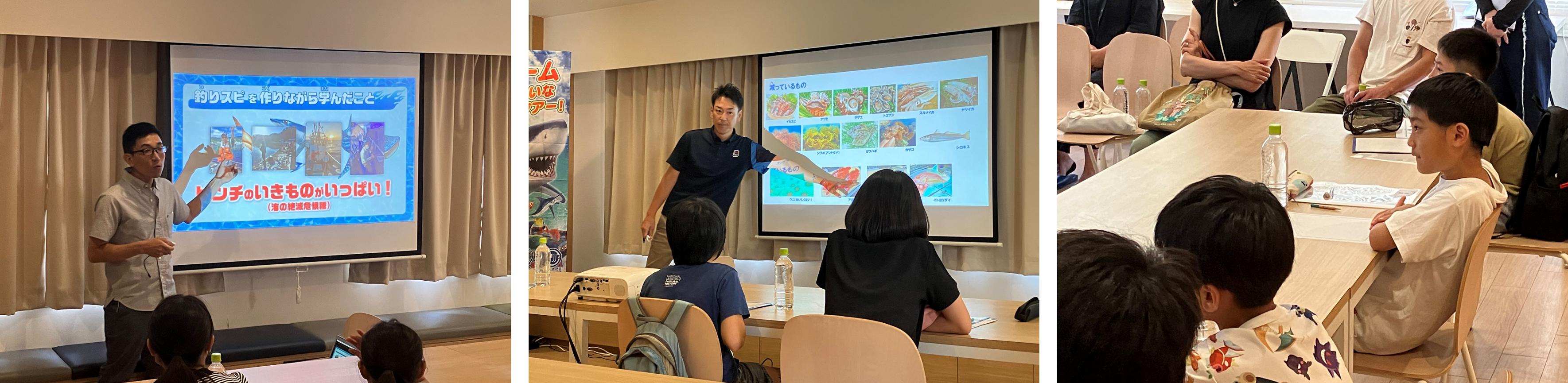『釣りスピリッツ』プロデューサーの清水さんより、海と魚に関する授業。 |