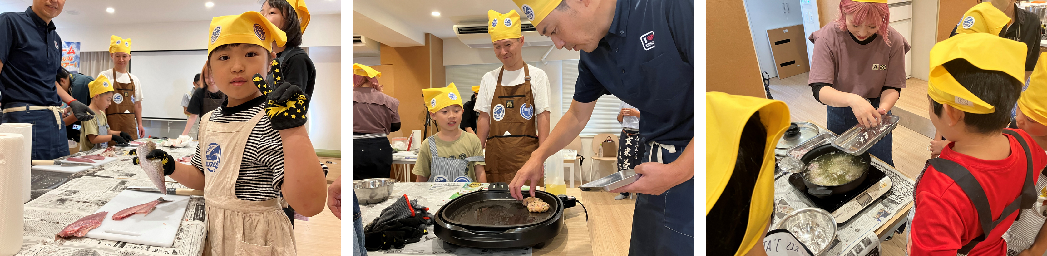 このたび、コラボ企画第2弾として、『釣りスピリッツ』が好きな子どもたちに向けて、本物の魚を調理・実食できるお魚さばき体験会を都内キッチンスペースで開催しました。魚さばき体験を通じて、命や自然、携わる人々への感謝の気持ちを一緒に学びました。また、魚や水産業、地域の魅力・課題を分かりやすく紹介する座学の時間を設け、子どもたちがサステナブルな取り組みを身近に感じ、考える機会を提供しました。親子で一緒に学び、調理することで、食を通じたコミュニケーションの場にもなりました。