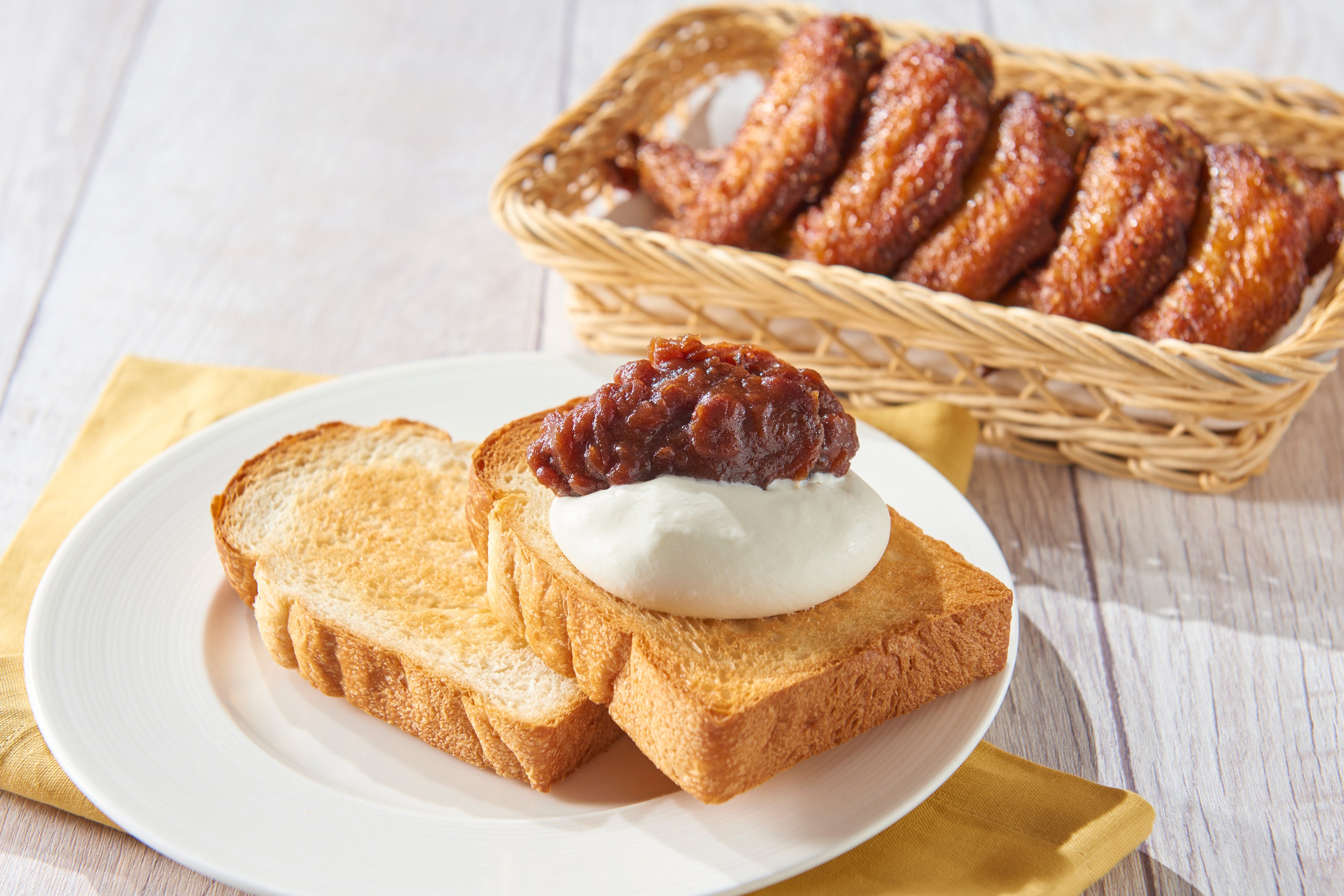 名古屋はもともと茶の湯の文化が盛んな土地であり、小豆を使ったお菓子は古くから愛されています。小倉あんと生クリームをたっぷりトッピングした「小倉トースト」は、お食事としてもデザートとしてもお楽しみいただけます。また、「手羽先」も名古屋を代表するご当地グルメ。朝から何本でも食べられると人気です。