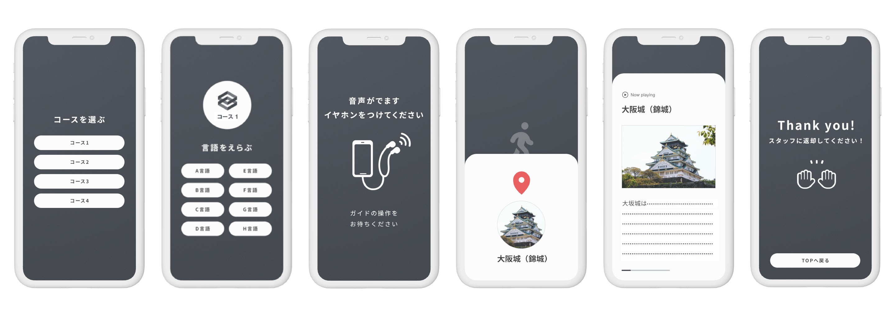 本観光ガイドシステムは、乗り物に乗った観光ガイドツアーの移動空間上でも、GPSを用いた正確な位置情報とオリジナル技術を掛け合わせ、複数言語対応のサービスを提供することが可能です。端末につながれたイヤホンを装着した観光客が、乗り物で移動しながら、あらかじめ設定されたGPS位置情報のポイントに到着すると、AIもしくは、ナレーターによる、翻訳されたツアーガイドの音声がイヤホンから自動的に流れ、ガイドを行います。アプリに言語情報を登録することで、GPSと連動して8か国語の音声が流れる仕組みで、ツアーガイドが操作することも可能です。バスや船など、一定レベルの速度が出ている乗り物でもサービス提供を行うため、ツアーガイドによる説明が必要な名所旧跡や施設のツアーなどから、地域を広範囲に巡回するバスツアーなどにも活用できます。