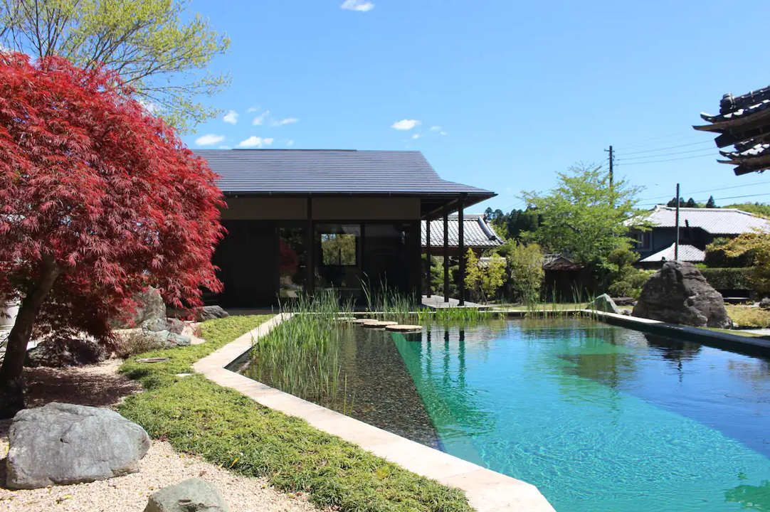東京中心部から車で約1時間の場所にある古民家リスティング。朝はホトトギスの鳴き声で目覚めるほどの自然に囲まれた場所に位置しています。昼は庭でのんびり読書やゴルフを、夜はバーベキューも楽しめます。大きなプライベートプール、サウナ、ジムも併設されています。