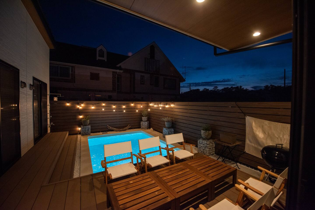 中庭にある貸切プールで、家族や友人との特別な時間を楽しめます。