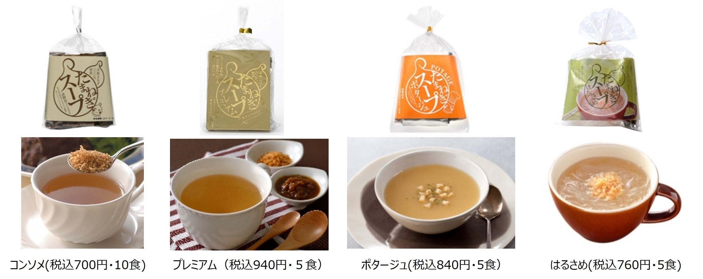 商品は全部で5種類。コンソメ(プレーン)、ポタージュ、はるさめ、プレミアム、アソートです。