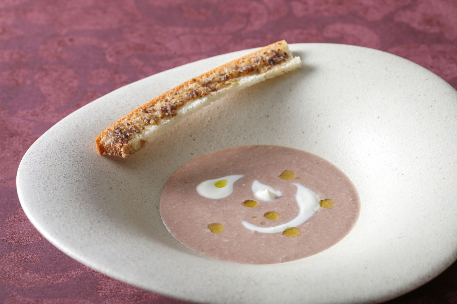 栗とマスカルポーネチーズのポタージュ 栗のクルトンと一緒に