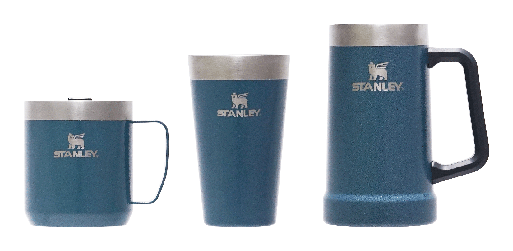 展開モデルは、STANLEYのアイコニックなアイテム[スタッキング真空パイント0.47L]、[クラシック真空マグ 0.35L]、[真空ジョッキ 0.7L]の3種類。
