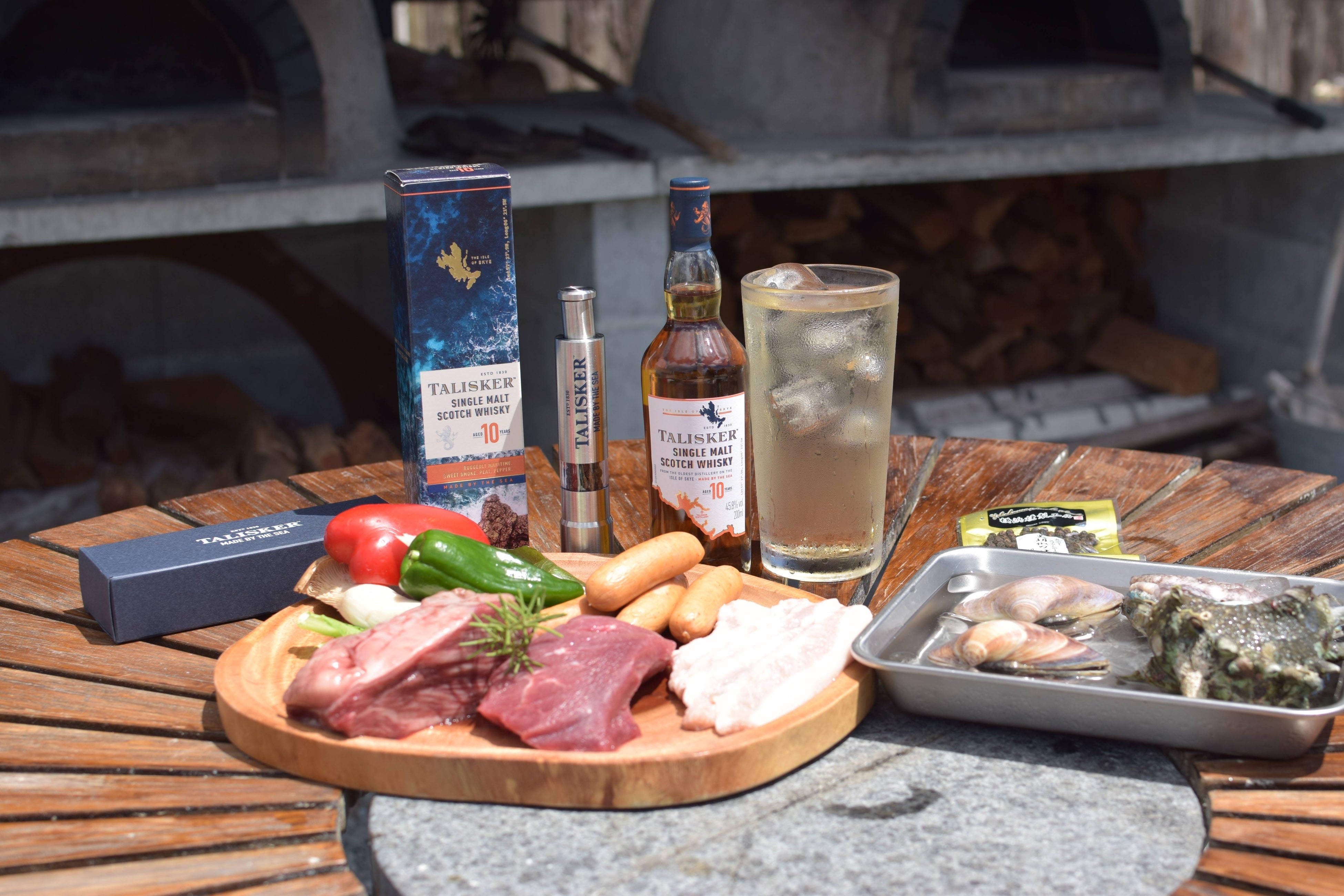 スコットランド・スカイ島の厳しい自然と海が育んだシングルモルト、タリスカー。スカイ島の自然そのものを体現するかのごとく、潮風のような香りと黒胡椒を思わせるスパイシーな味わい、焚き火の煙のようなスモーキーさは、大自然のなかで味わうのにまさに最適なウイスキーといえます。千葉県南房総の海辺に位置する「THE CHIKURA UMI BASE CAMP」との今回のコラボレーション企画では、一歩出れば目の前に大海原が広がる絶好のロケーションで、「海に育まれた」タリスカーならではのBBQを堪能することができます。