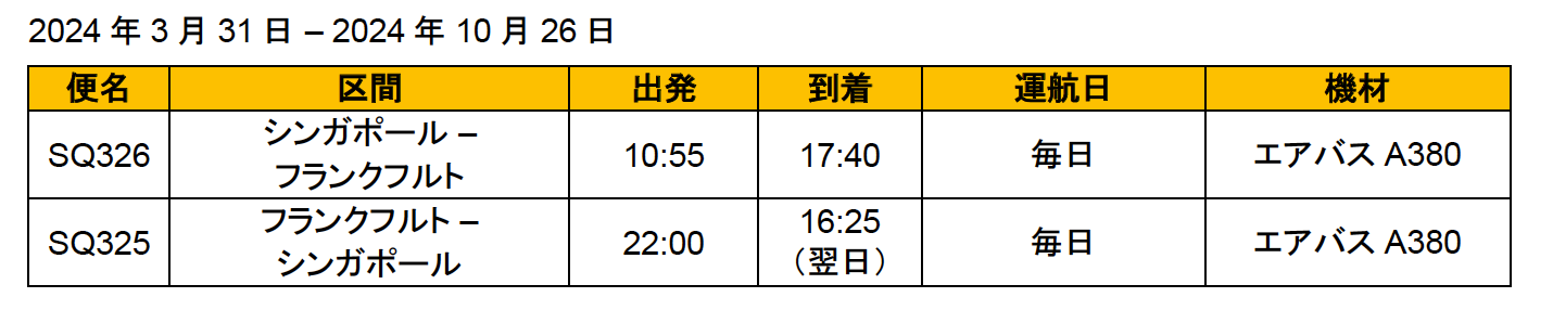 [1] 日本語のプレスリリースの別添Aでは、一部都市の運航スケジュールを抜粋。別添A
