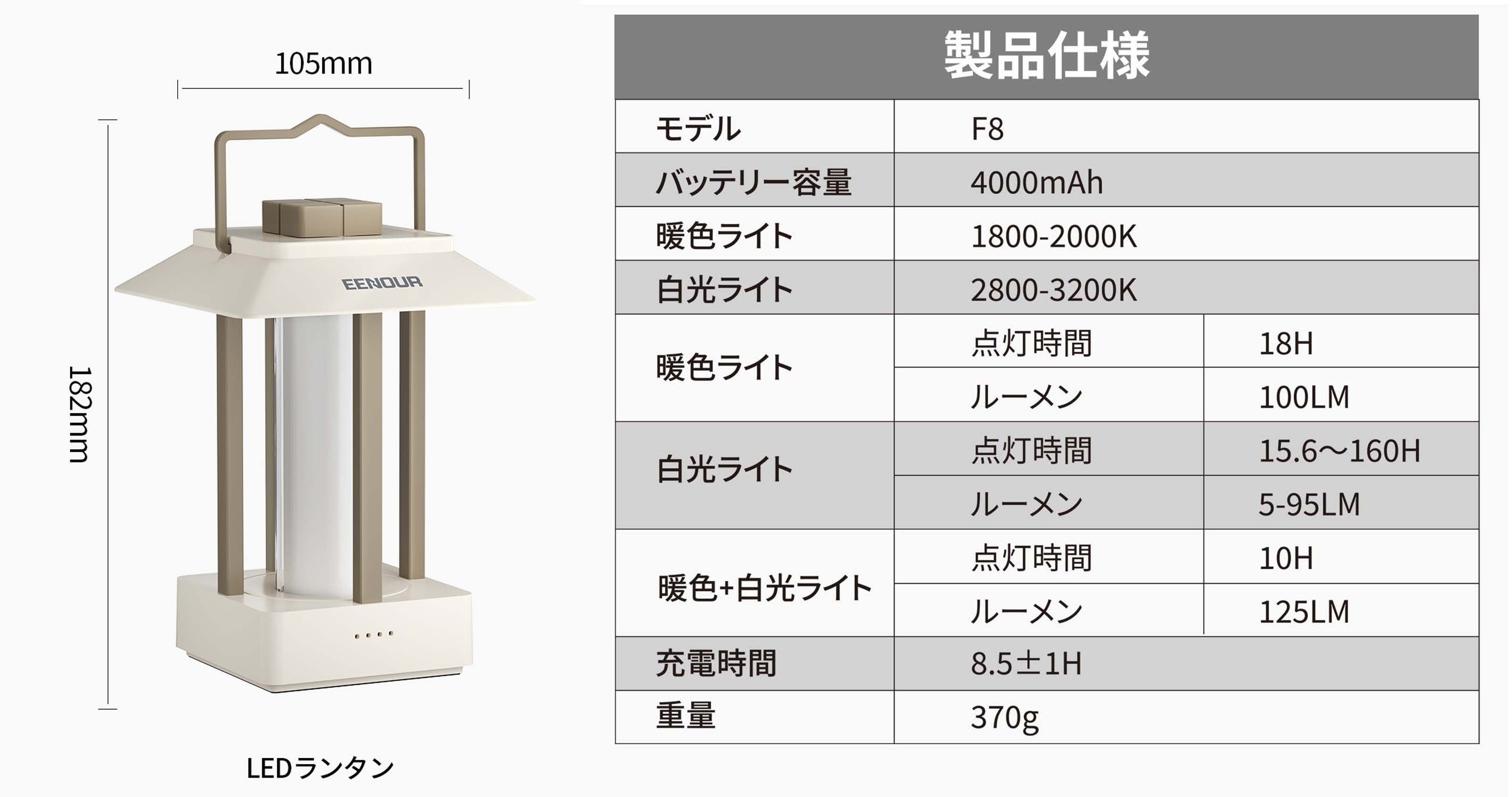 【EENOUR キャンプランタンF8】4000mAh大容量内蔵して最大160時間使用可能な高性能に、レトロなデザインでアウトドアだけではなく、室内インテリアにも幅広く利用可能な激押しアイテムです。