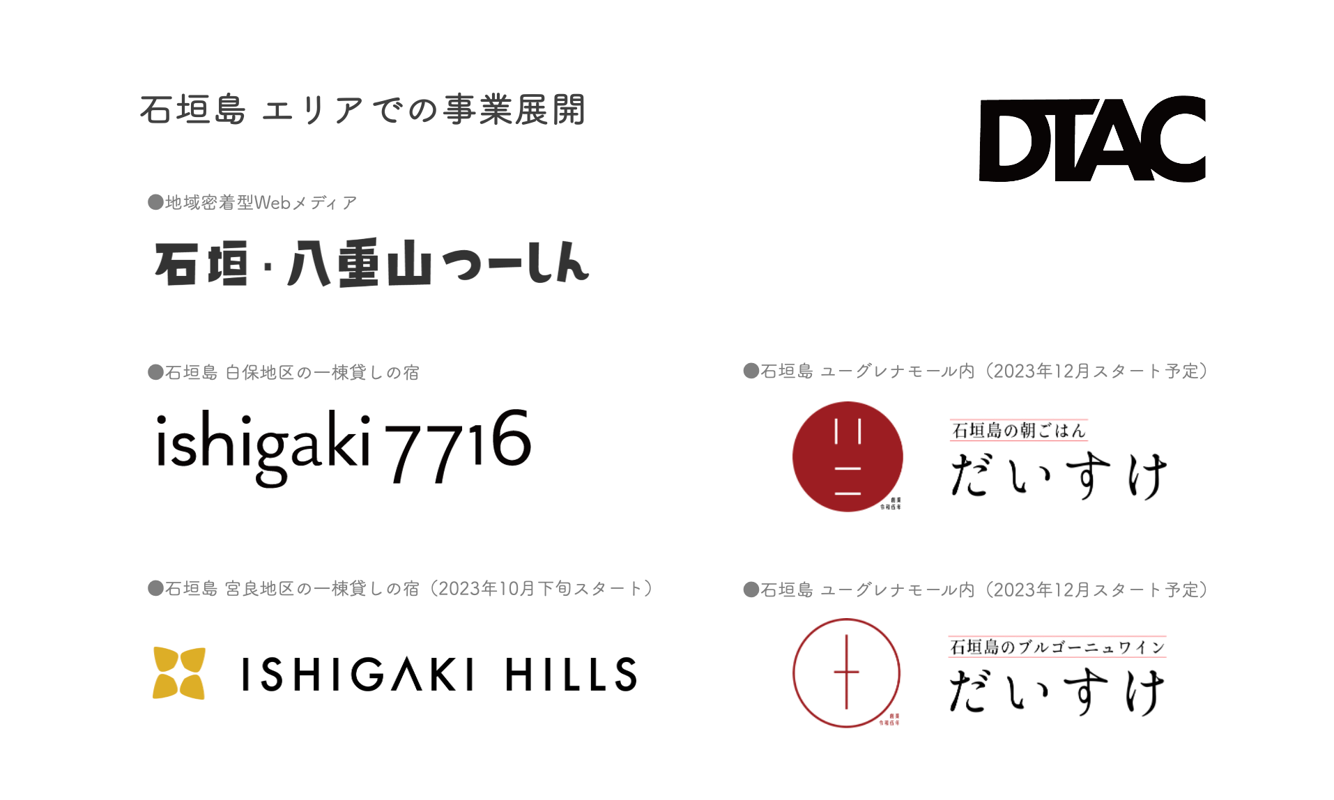 メディア運営パートナーである 株式会社morondo は、大阪府の枚方市の「枚方つーしん」や寝屋川市の「寝屋川つーしん」、神奈川県大和市の「大和とぴっく」 など、地域密着型のメディア運営で実績があり、多くの企業や行政とコラボレーションし各地域活動に貢献しており、DTACも本事業をきっかけに石垣市や竹富町、与那国町の一層の活性に貢献してきます。