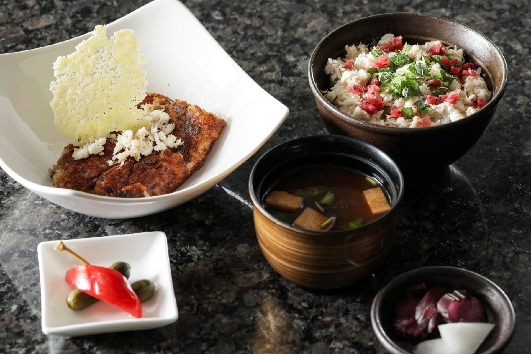 筑前海産 真鯛と茸の焼きチーズリゾット 匠スタイル/ピクルスの盛り合わせ