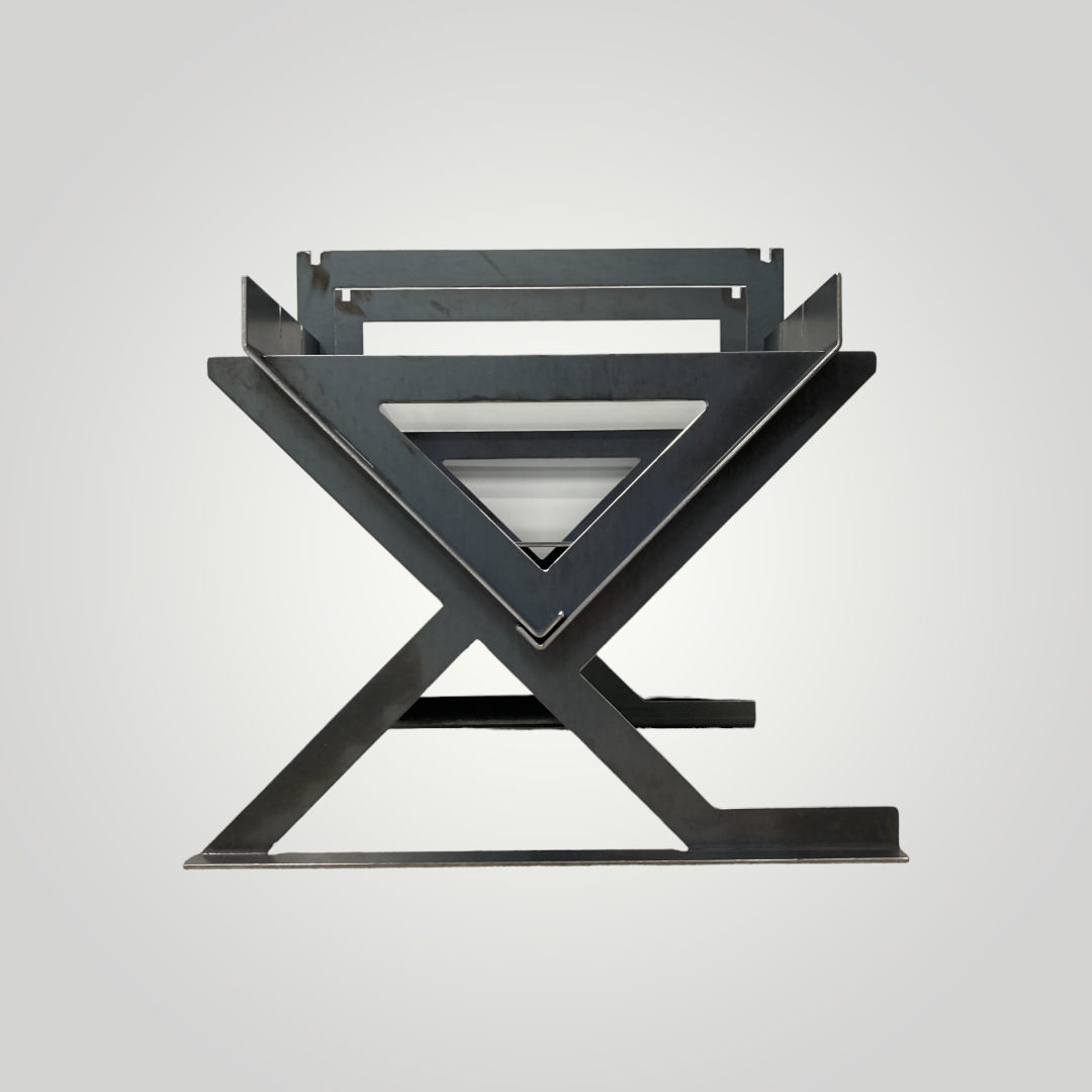 鉄製とステンレス製の異なる2つの素材で制作。鉄製は無垢材で使っているうちに出てくる使用感などを楽しんでもらいたい。ステンレス製は軽量で錆びにくいため、女性キャンパーにもお勧め。それぞれのキャンプスタイルで最適なものを選んでもらいたい。