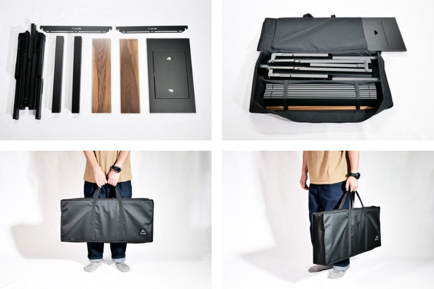 天板、メインフレーム、サイドフレームすべてを分解し、専用収納袋に収納できます。