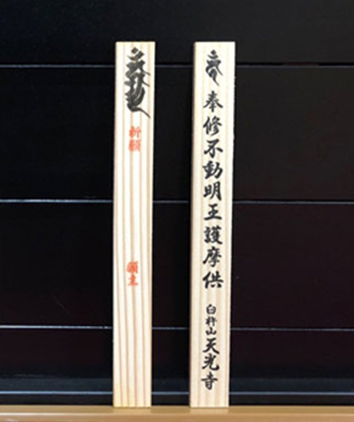 天光寺の体験修行を受けられた方がご自身のアカウントからSNS投稿していただき、その内容、画像等をメールでお送りいただきます。お名前とご希望の祈願内容をお知らせいただき、護摩木にこちらで書かせていただきます。毎月28日お不動様の縁日に護摩焚き供養を奉修いたします。