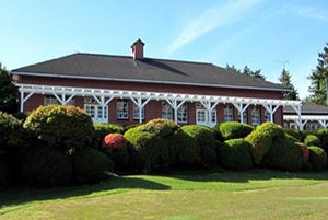 六甲山の開祖、英国人貿易商のアーサー・ヘスケス・グルームが日本で最初のゴルフ場として1903(明治36)年5月に開業した「神戸ゴルフ倶楽部」のクラブハウス。一面のガラス窓と下見板の朱と黒の大きな寄棟屋根のコントラストが美しい。