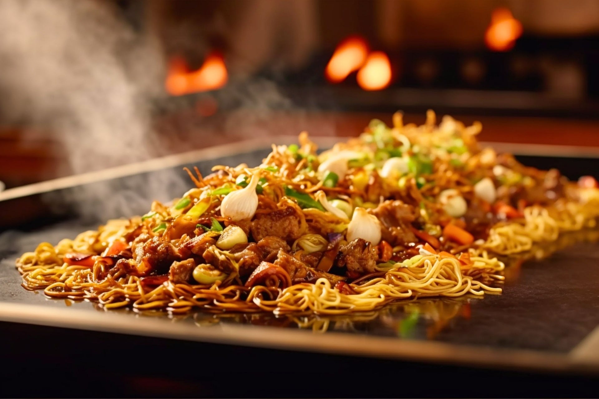 下町らしい締めには特製焼きそばを。創業昭和9年、東京・亀戸の老舗味噌専門店「佐野みそ」の特製醤油をご用意しております。アレンジでBBQソースを掛け合わせてオリジナルソースを作るのもよし。料理長おすすめの黄金ブレンド比もアドバイスさせていただきます。