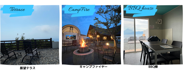 展望テラスからは四季折々の富士山と駿河湾の絶景と駿河湾に沈む美しい夕陽を、夜はキャンプファイヤーなど非日常を演出いたします