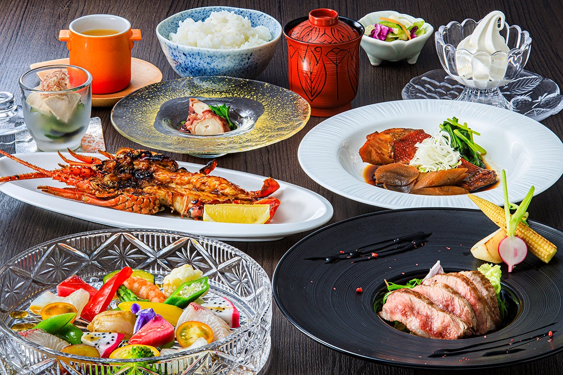 「雲と風と」では、駿河湾で水揚げされる海の幸、伊豆の山の幸など料理長自ら厳選した食材を和食会席コースとしてご提供いたします。