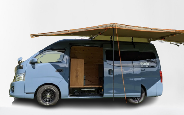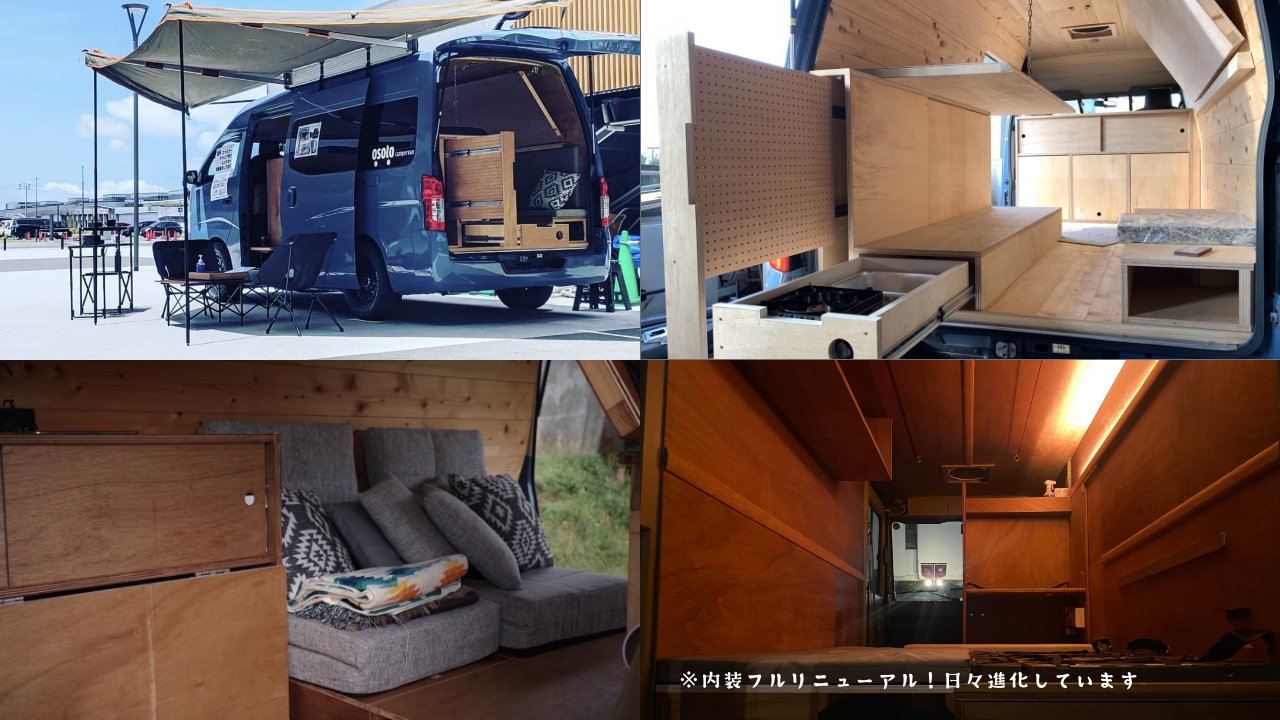 この車両は、日産の大型バン「キャラバン」をOSOTO campervanがフルカスタム。内装と外装に独自のデザインを施し、大型ポータブルバッテリーやアウトドアグッズを標準装備。3名まで就寝可能で、九州旅行に最適。