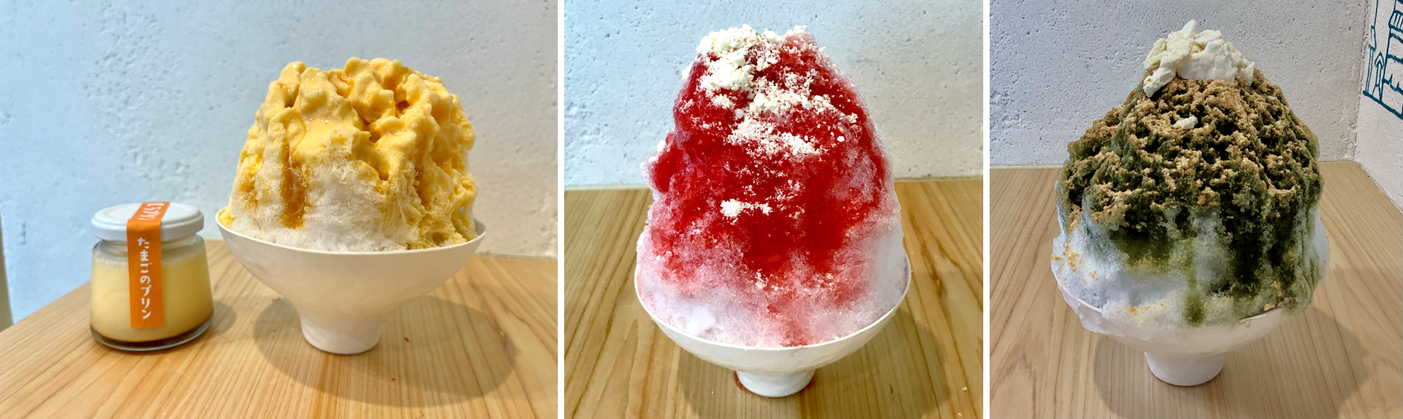 「姫路城おひざもと しろプリン」では、プリン屋さんが作るかき氷シリーズとして、かき氷の中にプリンがまるごと1個入った贅沢かき氷3種を販売します。強い日差しを浴び姫路城を観光した後、涼しさを感じてもらえる商品となっています。