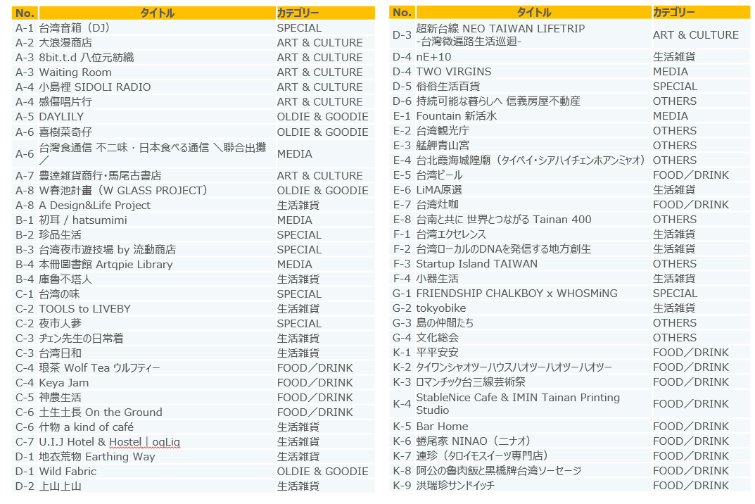 ■特別後援:台湾文化部、台湾外交部、台湾農業部、国家開発委員会、客家委員会、 原住民族委員会、
