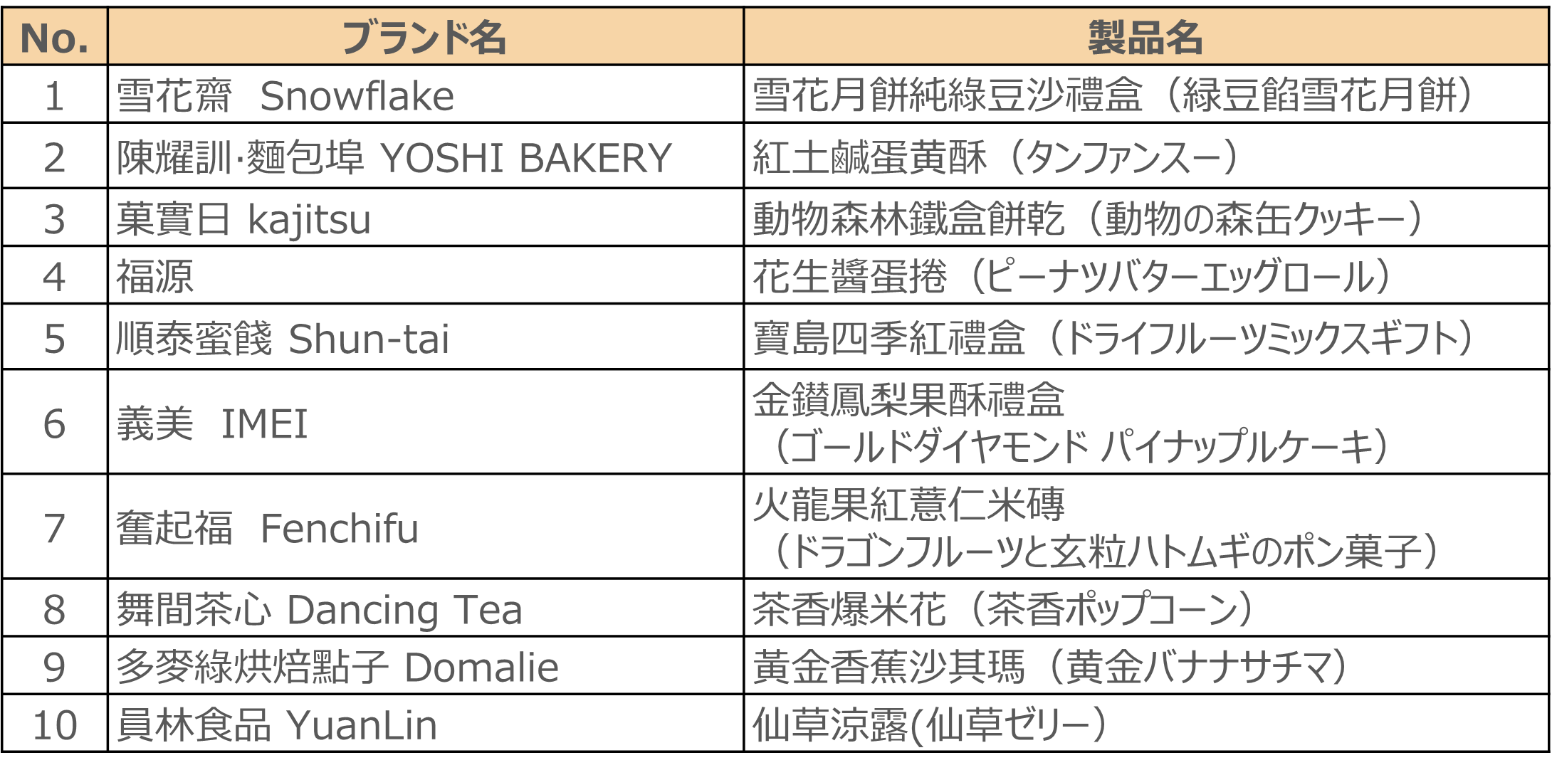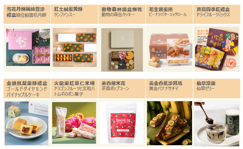 今回の物販マーケット:台湾スイーツのコーナーでは、文化総会発行の『Fountain新活水』2022年7月号で特集された「ご褒美スイーツ101選」と、台湾農業部のおススメからさらに選りすぐられた、台湾各地のお土産10種をセレクト。高級感あふれるものから大衆的なお菓子まで、台湾の本場の味をそのまま、上野公園へお届けします。