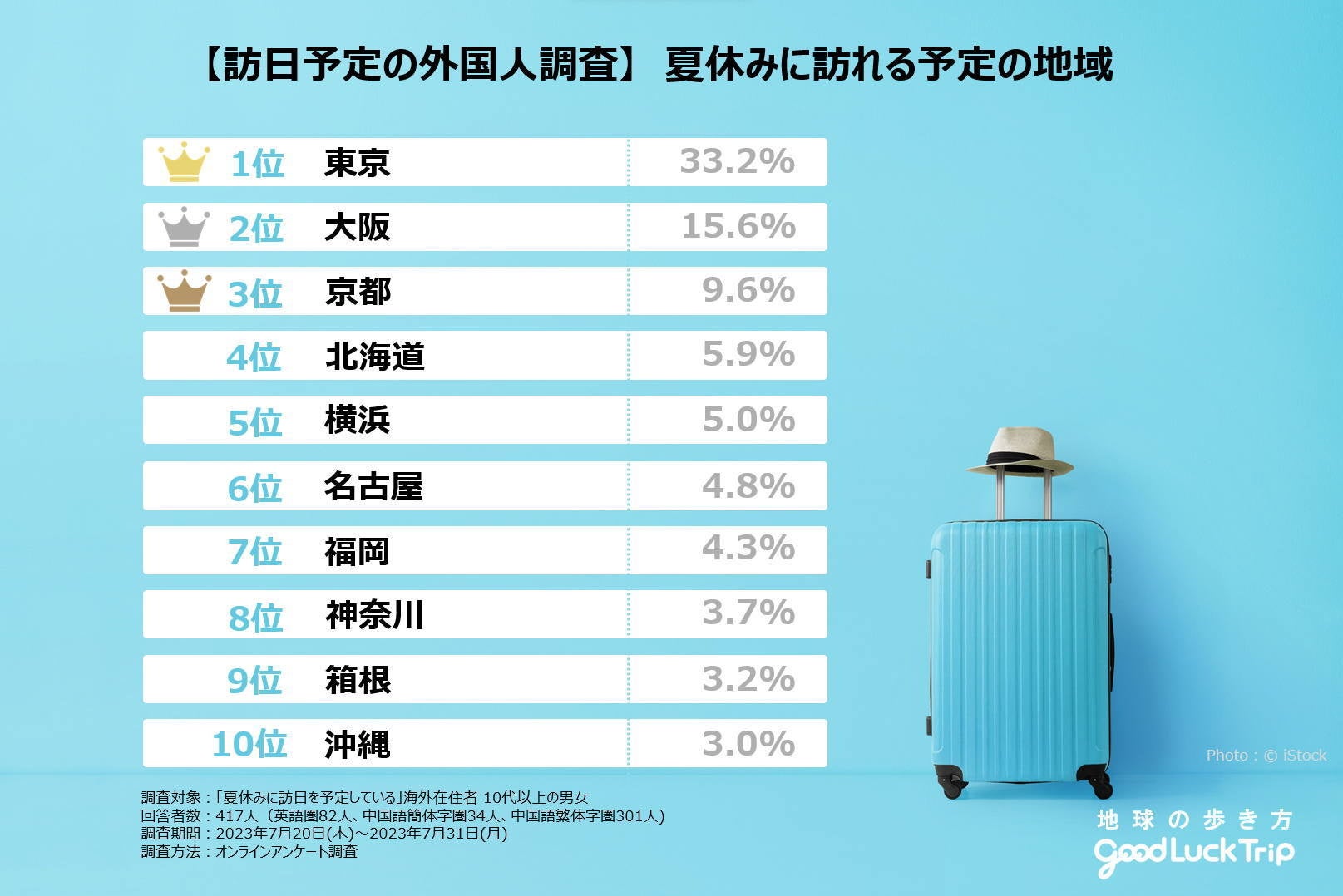 夏休みに訪れたい地域ランキングTOP10を発表!
