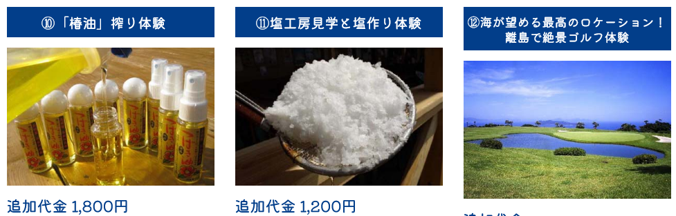 こちらの商品は「特定有人国境離島地域社会維持推進交付金」の補助を受けておりますので離島体験プログラムは必ず必須となります。
