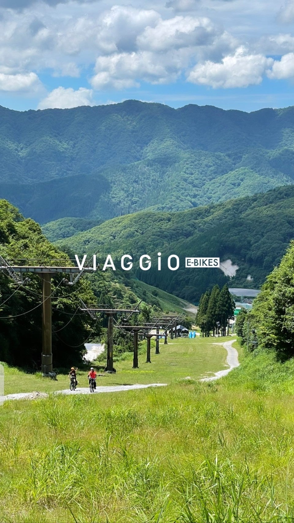 テーマは“大人の夏休み”!E-MTBで遊ぶ 夏のゲレンデライド。グランスノー奥伊吹の夏のスキーゲレンデをE-Bike(スポーツタイプの電動アシスト自転車)で頂上を目指します。まるで「プライベートゲレンデ」のように大自然を満喫できる他、林道や古民家の風景を楽しんだりと非日常を味わえます。