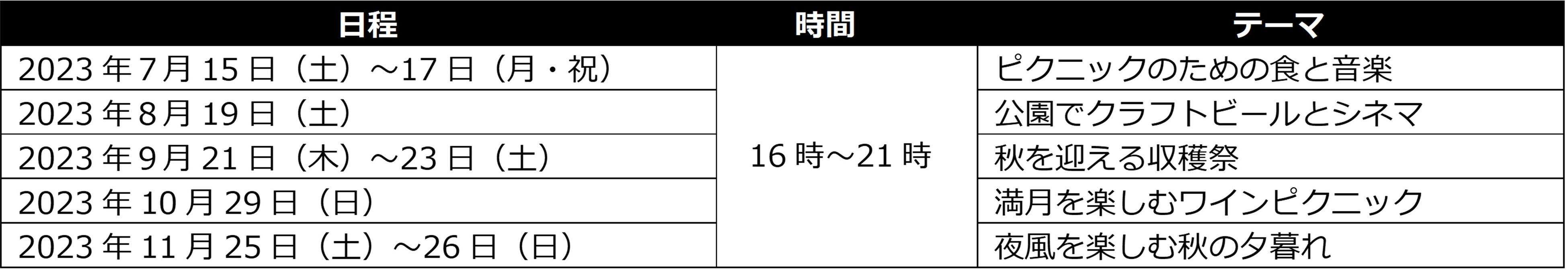 7月を皮切りに始まった「NIGHT PICNIC」では“みんなで夜の公園を楽しむ”をテーマに掲げ、5か月間にわたり季節に合わせた様々なコンテンツを通して神戸に住む方や神戸を訪れる方に特別な時間を提供します。多様な人たちが集まる公園で、屋外空間の楽しみ方について考え、提案する飲食店や、アウトドアで心地よく感じる音楽や文化を展開していきます。