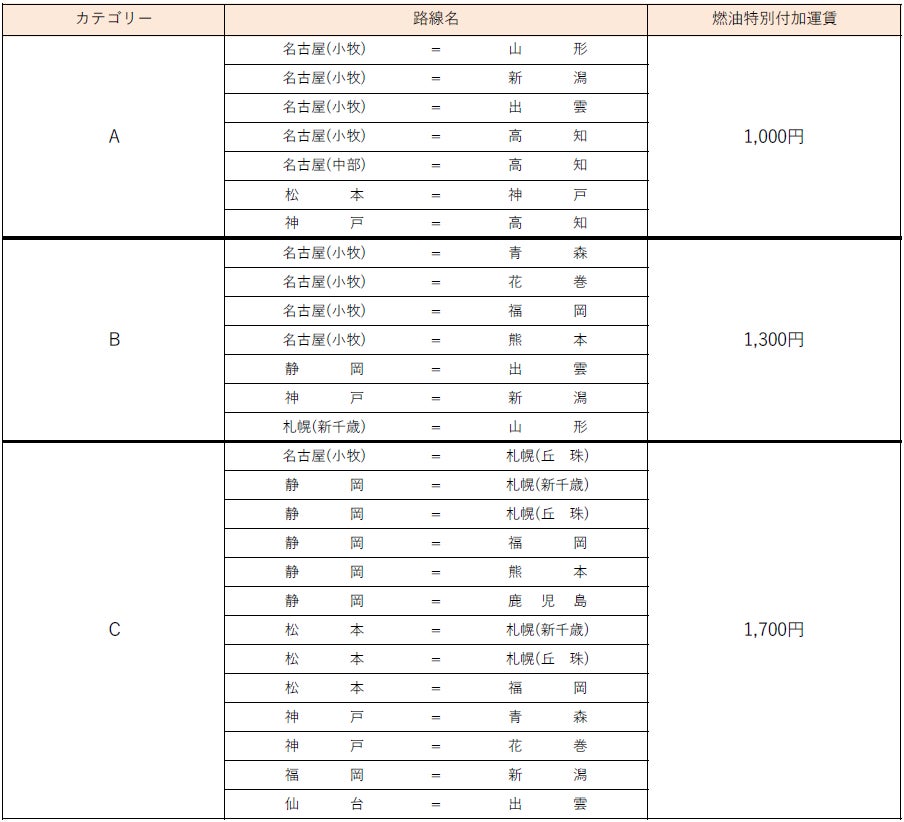 なお、燃油特別付加運賃は、シンガポールケロシン市況価格および為替レートの変動に応じて、 1ヶ月毎に見直しております。