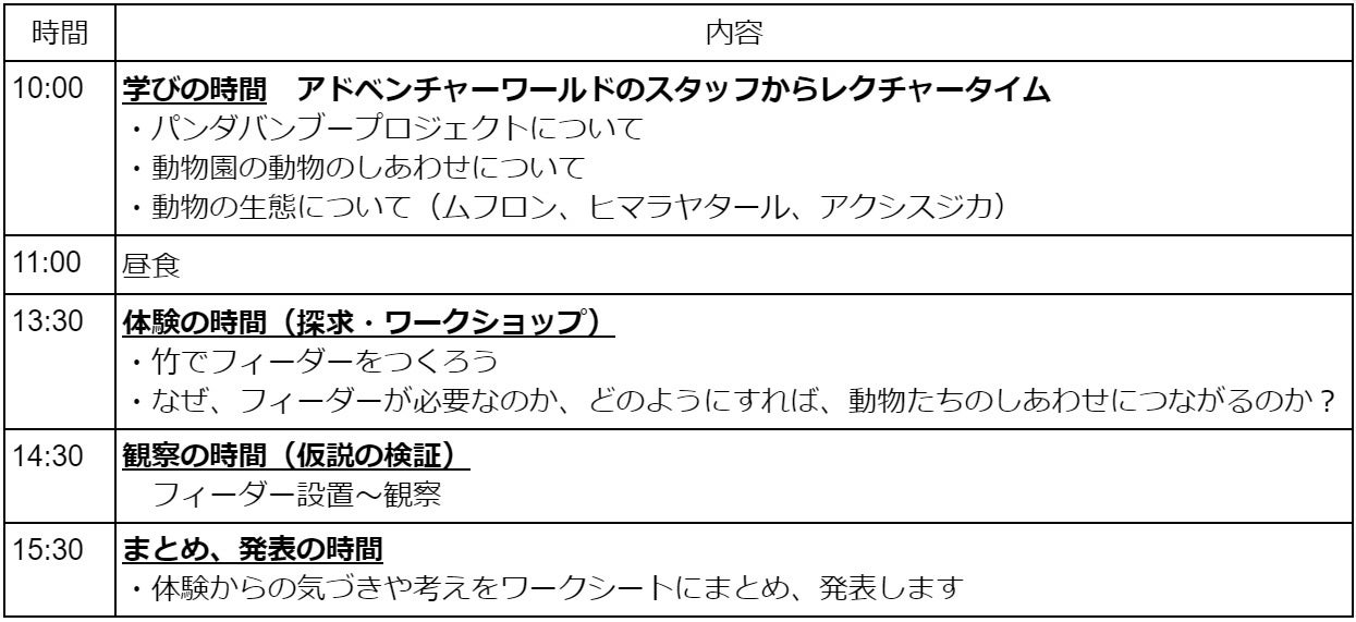 パンダが食べ残す竹幹でムフロン、ヒマラヤタール、アクシスジカのフィーダーを作り実際に動物たちに給餌、観察します