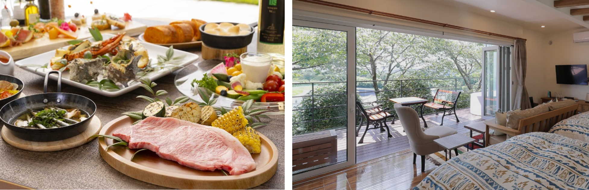 同施設のグランドオープン1周年を記念した特別なプランです。2023年9月限定の超特別料金でご提供いたします。夕食は、静岡県特産和牛「静岡そだち」のサーロインをメインに、地元食材を取り入れた、ワイン好きのためのコース仕立てのBBQスタイルでお届けいたします。