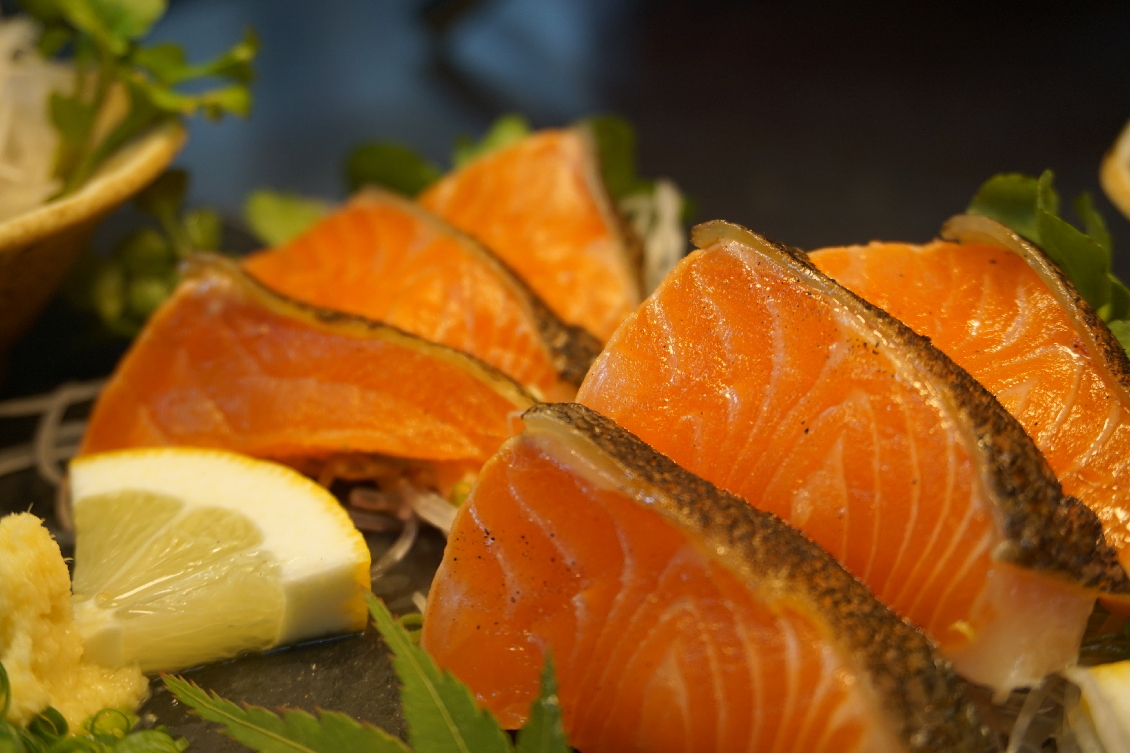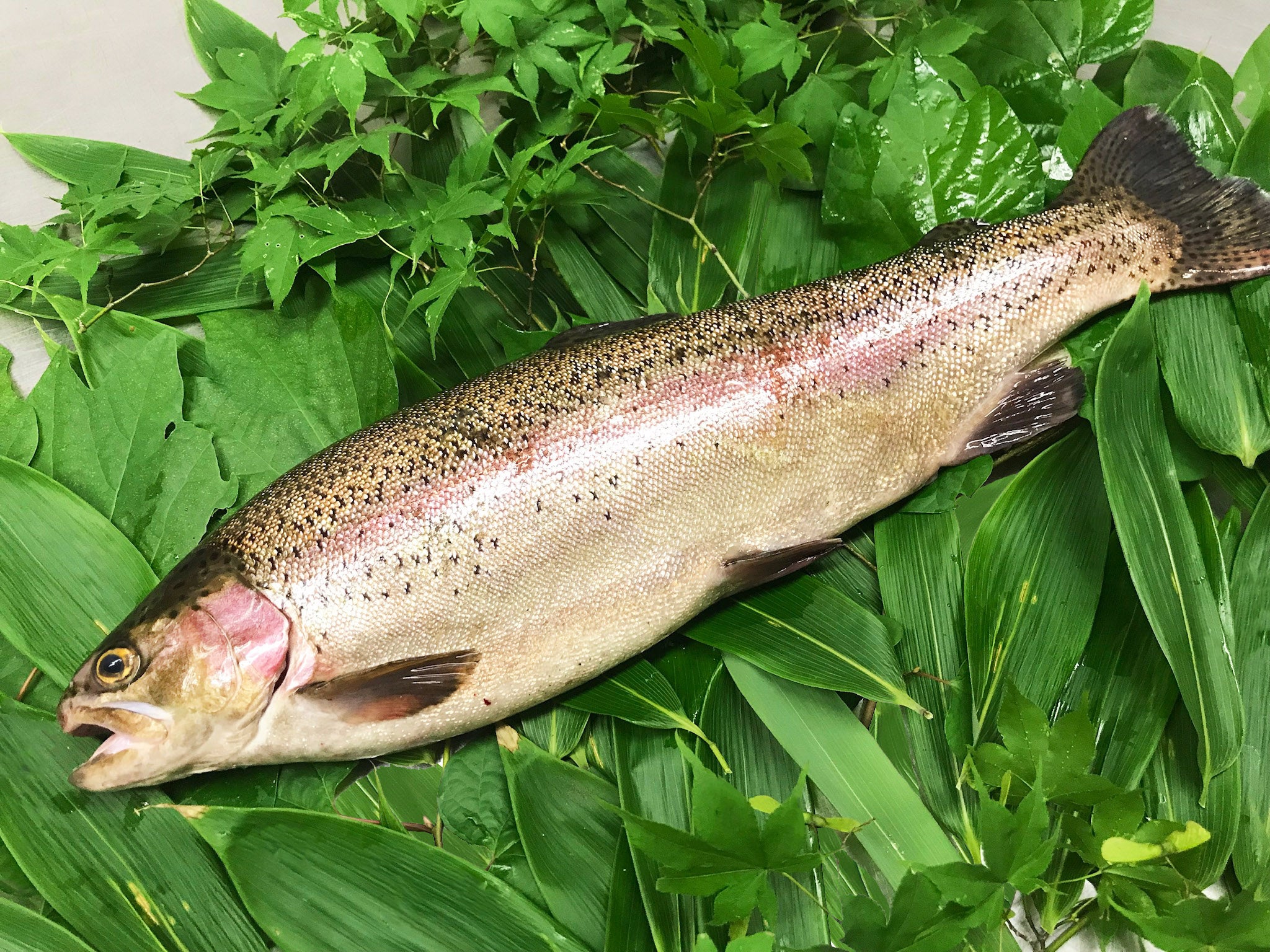 甲州ワイン鱒の味は、さっぱりとした脂乗りでクセが少なく、塩を振り皮目を炙り、お刺身でご提供。